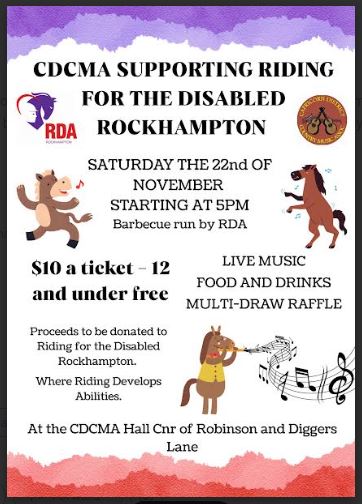 Come and join us for a fun night filled with music, food and raffles to support a great cause – Rockhampton Horse Riding for the Disabled.
