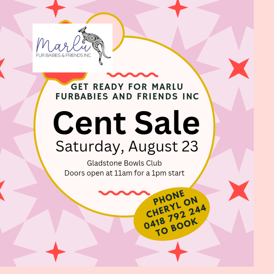 Marlu Furbabies and Friends Inc is a non -for-profit group that rescues, cares for and rehabilitates native wildlife. We are hosting a huge Cent Sale with over 400 prizes – including cent sale prizes, kids prizes, cake walk, mystery boxes and Multi-Prize draws. This will be a fun afternoon for everyone. Doors open at 11 am for ticket sales and draws start at 1 pm. To book your seats please phone Cheryl on 0418 792 244.