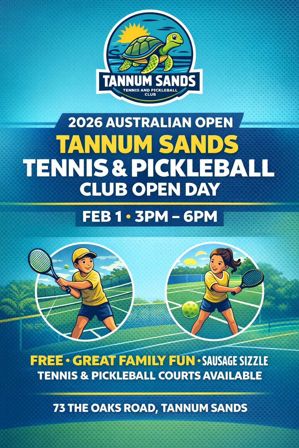 On Sunday 1st February, our club is planning a family open day event that will feature both tennis and pickleball, to coincide with the Australian Tennis Open men’s final.